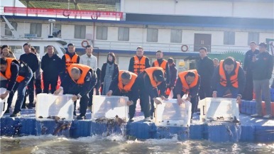 近日,2025年武汉市水生生物增殖放流(第二批)活动在武汉渔政码头举行,在冬日阳光的照耀下,40万尾胭脂鱼和长吻鮠鱼苗进入母亲河的怀抱。