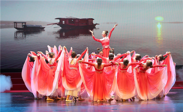 在大型舞蹈《南湖的红船》激昂的乐曲声中,演出拉开帷幕。大合唱《保卫黄河》、情景表演唱《绣红旗》、歌曲联唱《唱支山歌给党听》《我的祖国》《我们走在大路上》《团结就是力量》等曲目表现了宏伟壮阔的家国情怀和奋勇无畏的红色精神,将演出与百年党史深度融合,让广大观众在文艺美的体验中接受精神洗礼。当演出进入尾声,全场观众共同高唱《没有共产党就没有新中国》,将活动推向高潮。(文 邓显军 许洋)