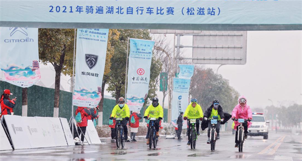 国际在线湖北消息:12月26日,湖北·首届“梦之蓝”大众山水运动季——2021年骑遍湖北自行车比赛(松滋站)在荆州松滋市稻谷溪城市湿地公园鸣枪开赛。