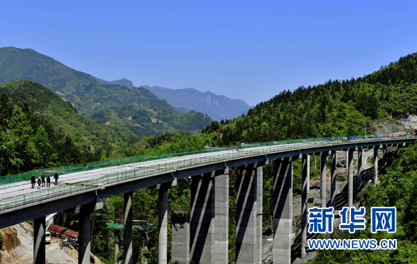 图为东湖高新集团全资子公司湖北路桥承建的宣鹤高速施工现场。