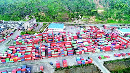11月18日,繁忙的宜昌港务集团云池港区一角。2018年1月至10月,云池港集装箱吞吐量突破12万标准箱,件杂散货100万吨,货物吞吐量305万吨,提前完成全年利润指标,稳居湖北省水运口岸第二位。 (视界网 黄翔 摄)
