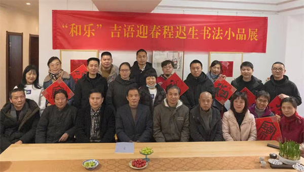 国际在线湖北消息:1月3日,武汉清波书院内墨香浮动、花香氤氲,“吉语迎春”程迟生书法小品展正式开展。武汉市新洲区文联主席祝锦荣、武汉市书法家协会副主席袁永安、武昌区书法家协会副主席韩勇等近50人出席活动。新洲区书法家协会秘书长陈兵主持开展仪式。