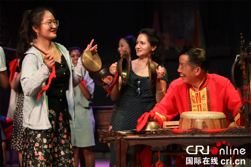 外国网红跟着民间吹打乐传承人体验乐器 摄影 黄正恒