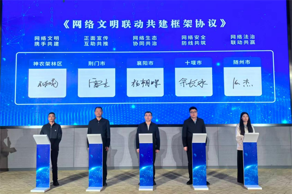 本次活动由市委宣传部(市文明办)、市委网信办联合主办,襄阳、十堰、荆门、随州及神农架共同签署《网络文明联动共建框架协议》,共同守护区域清朗网络空间。