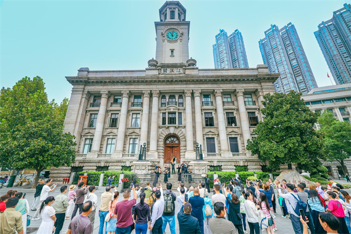 10月12日,武汉爱乐乐团在江汉关楼前举行快闪活动