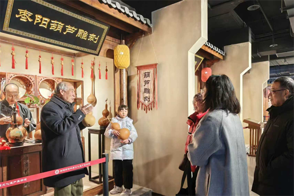 游客感受枣阳葫芦雕刻技艺 摄影 张艳锋