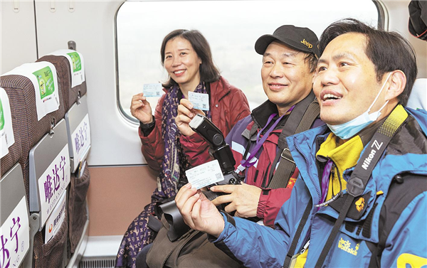 抢到首发列车的票,乘客喜不自禁。(通讯员 吴晴霄 摄)