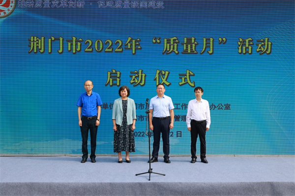 启动仪式上,荆门市市场监管局副局长卢峻峰宣读了《荆门市2022年“质量月”活动方案》,荆门市水务集团董事长陈永根代表政府质量奖获奖企业发言,荆门市质量强市工作委员会办公室主任、市场监管局局长陈晖发表了热情洋溢的讲话。