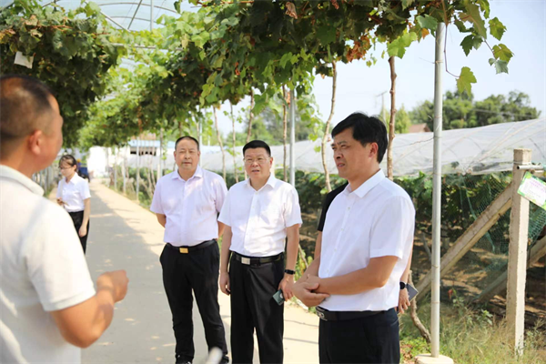 京山秋满园葡萄种植专业合作社负责人向来宾介绍产业发展情况 摄影 黄正恒