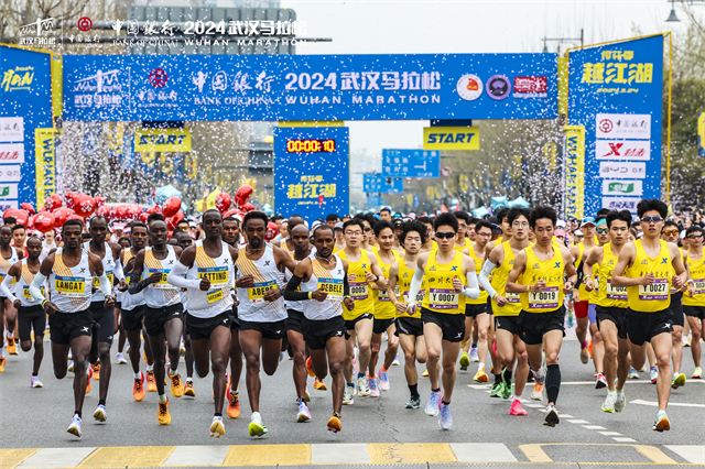 3月24日7时30分,中国银行2024武汉马拉松鸣枪起跑。来自29个国家和地区的3万名跑者激情开跑,参赛选手在赛场上感受武汉这座英雄城市人民的活力与热情。