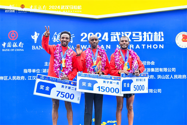 武汉马拉松男子组颁奖现场 供图 赛事组委会
