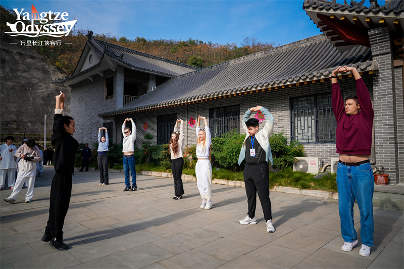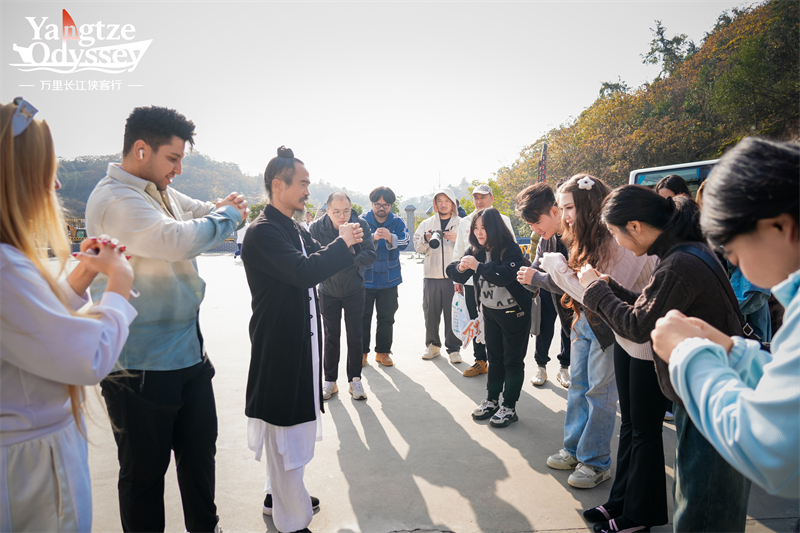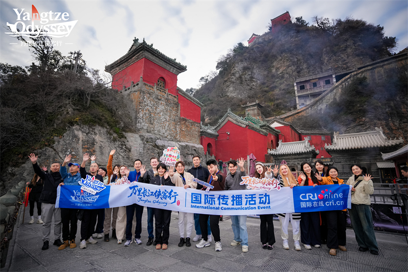 11月14日,参加“万里长江侠客行”国际传播活动的外国网红博主与中央广播电视总台多语种主播一同走进道教圣地武当山,沉浸式感受中国传统文化之美。