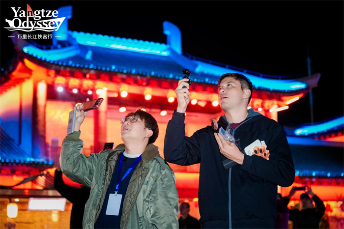 国际在线湖北消息(记者 胡礼国):11月13日晚,武当山夜色如墨,《武当一梦》园区内灯火璀璨、仙乐悠扬。由长江文化国际传播中心与国际在线联合举办的“万里长江侠客行”国际传播活动的中外嘉宾们在此集结。来自德国、俄罗斯、墨西哥、埃及、韩国、泰国、巴基斯坦等国的海外网红博主携手中央广播电视总台英语、德语、希腊语、捷克语、克罗地亚语的多语种主播沉浸式体验无人机烟花秀、《大话武当》演艺与“入境武当”VR项目,在科技与传统的碰撞中触摸武当文化精髓。