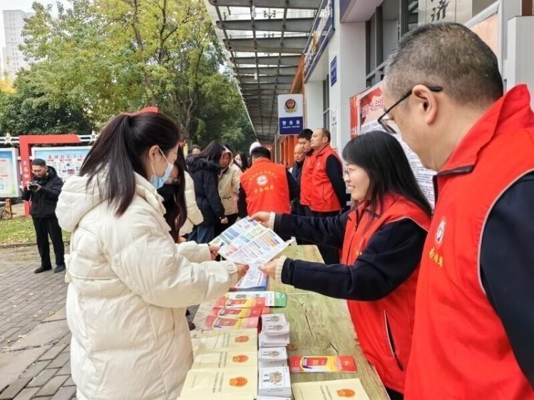 在法治宣传方面,服务队积极走进社区、商铺、校园,开展宣传活动。在孝感市人民广场上,鲜艳的普法展板与志愿者们的红马甲交相辉映。志愿者面带微笑,耐心地向一位大姐解释道:“阿姨,消费者权益保护法明确规定了我们消费者在购买商品时享有的权利和维权途径,遇到问题咱们要学会用法律武器保护自己。”