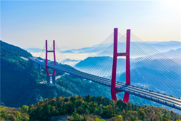 宜来高速柴埠溪特大桥以一袭“红妆”惊艳亮相武陵山区