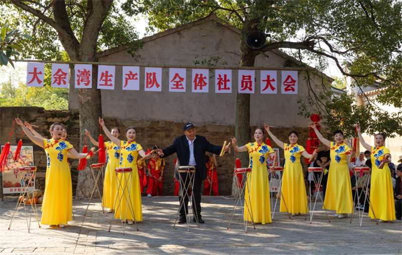 调研当日,乡村场院与街巷间,锣鼓喧天,喝彩不断。大余湾对民俗非遗的保护,是将其融入日常,实现了有效的“活化”传承。皮影戏幕布后的光影变幻,木偶戏艺人的巧手操控,引得孩子们阵阵惊呼;惊险刺激的非遗斗鸡表演和刚柔并济的木兰武术展示,展现了力量与技巧之美;韵味十足的楚剧、妙趣横生的湖北大鼓、神奇的川剧变脸,以及富有节日喜庆氛围的采莲船等民俗表演,轮番上场,为参观者奉上了一场场传统文化的盛宴。