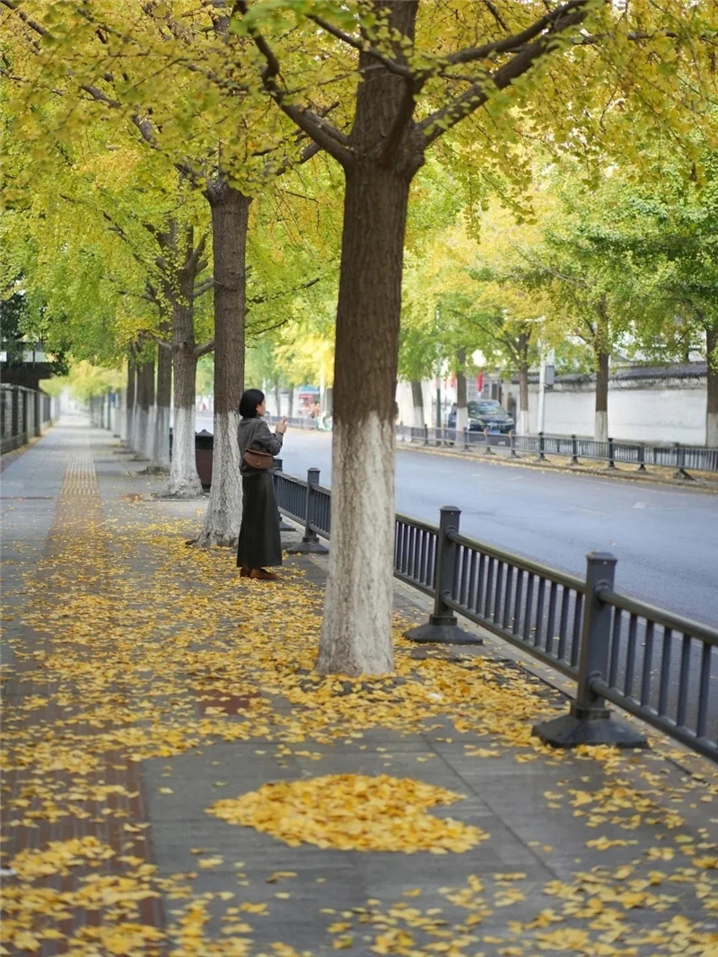 荆州:银杏铺道 择叶留景藏古城秋韵