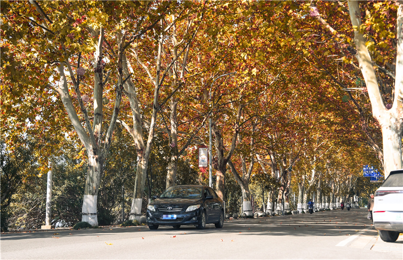 金黄的银杏、橙黄的梧桐、鲜红的枫叶层层叠叠,铺就了一幅天然“调色盘”。市民漫步其间,或驻足拍照定格秋景,或俯身拾取落叶留念,让原本转瞬即逝的秋色,变成了可触可感的城市风景。