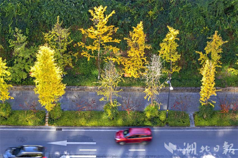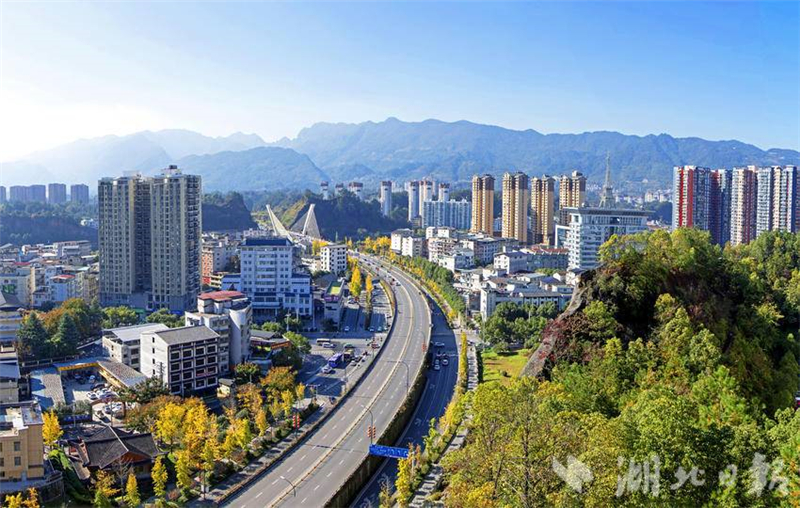 每年11月中下旬,州城金山大道两侧的银杏树冠如金色云霞,恩施女儿会公园层林尽染,金马公园内的湖面倒映着五彩斑斓的树影,与城区鳞次栉比的现代建筑群、仿古建筑等相映成趣,构成一幅幅流动的生态画卷。