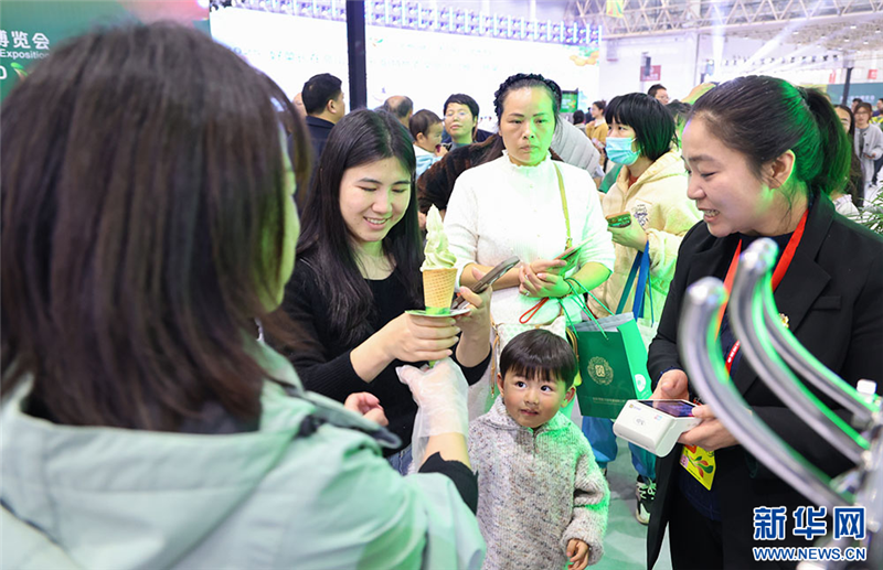 11月29日,市民在2025湖北农业博览会上购买茶味冰淇淋。新华网连迅摄