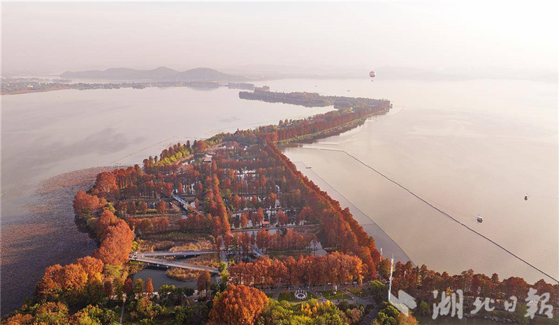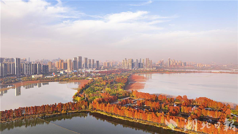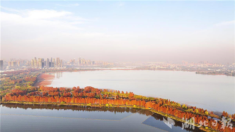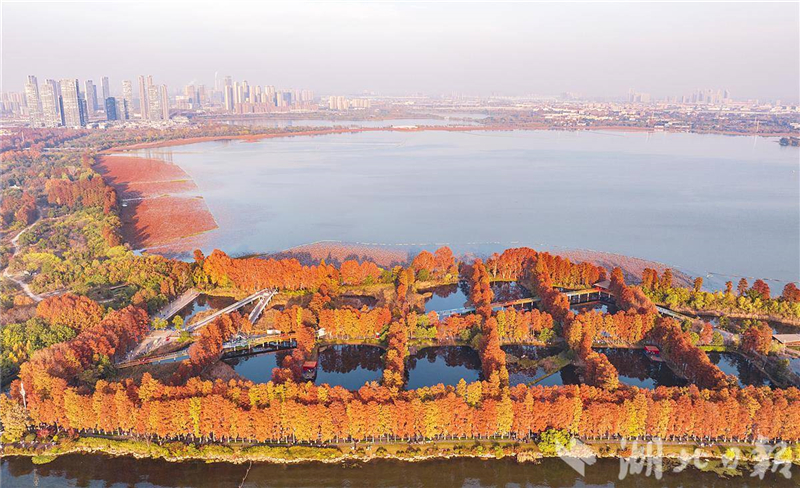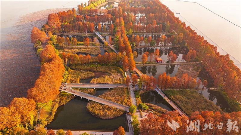 近日,武汉华侨城生态湿地公园内层林尽染。