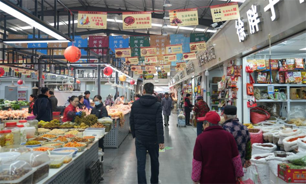 每个区域均设有标识牌,地面也配有导视地标,让人一目了然。“以前买菜、割肉、买调料要兜好几圈,现在第一栋买完菜和油,走几步到第二栋割肉,十分钟就能备好一桌菜!”提着刚采购的物品,居民王大爷笑着说道。