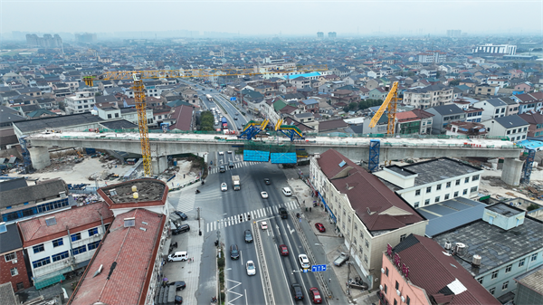 通甬高铁慈溪特大桥A段跨芦庵公路连续梁顺利合龙