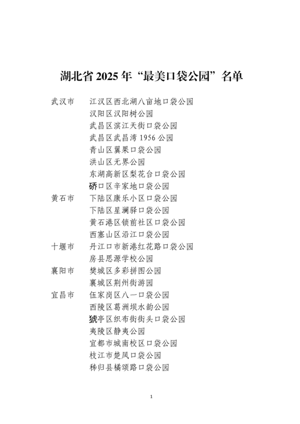 近日,湖北省住建厅公布湖北省2025年度“最美口袋公园”名单,武汉市东湖高新区梨花台口袋公园、洪山区无界公园、西北湖小游园、青山区翼果口袋公园、襄阳市樊城区多彩拼图公园、宜昌市枝江市楚凤口袋公园、黄石市西塞山区沿江口袋公园等40个口袋公园入选。