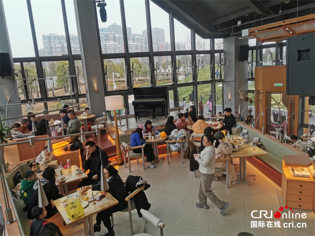 许多市民听完音乐会后在餐厅内喝咖啡、品美食 摄影 胡礼国
