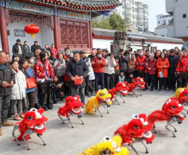 当日上午,在老南门,“荆州十二时辰”街头快闪秀火热开场。古彩戏法等传统技艺展示引得现场掌声连连,而机器狗巡城“舞狮”环节更是将气氛推向高潮——科技感十足的机器狗与喜庆的舞狮表演巧妙结合,引得市民游客纷纷上前互动拍照,直呼“别样的春节体验”。