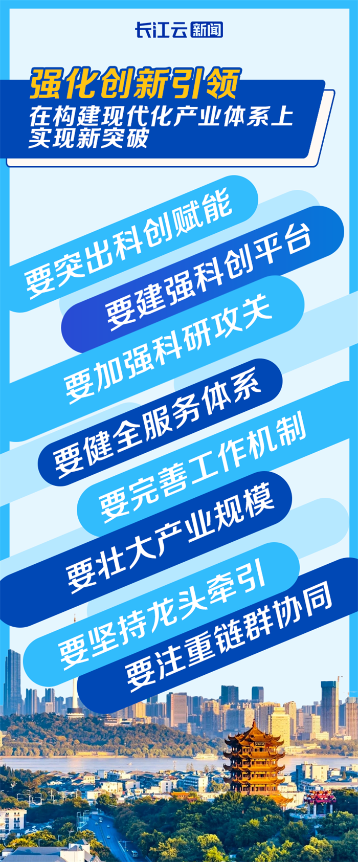 科技创新是驱动发展的核心引擎,现代化产业体系是支点建设的底气所在。要着力推动科技创新和产业创新深度融合,加快发展壮大新质生产力,提升现代化产业体系的创新力、竞争力,加快构建以新兴产业和未来产业为先导,先进制造业为骨干、现代服务业为支撑的现代化产业体系,塑造湖北产业竞争新优势。
