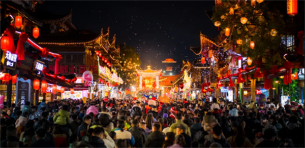 正月初一,荆州古城东门宾阳楼下举办新春开城大典,融合楚式礼乐与新春纳吉,众多游客身着战国袍沉浸式体验荆楚文化。夜幕降临,“凤舞九天”灯光秀以光影勾勒千年文脉,金凤广场上灵动火凤凰引得阵阵惊叹。从街头快闪到夜间光影,荆州以满满诚意让游客感受“年味不打烊”。