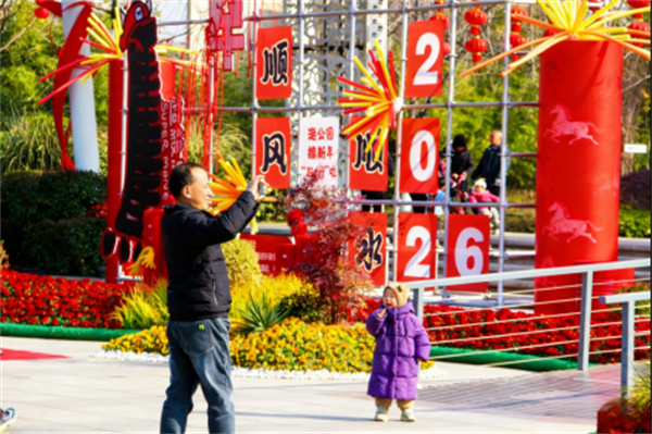 月亮湾公园推出新春文明游园打卡活动,亲子自然寻宝让游客在寻找小挂饰中体验新春乐趣。人民公园则以“马年福启·趣游打卡”为主题,通过充气艺术、创意打卡点与传统元素相结合,打造沉浸式新春园景。襄阳市公园日均客流量创新高,安全有序的游园环境赢得游客一致好评。