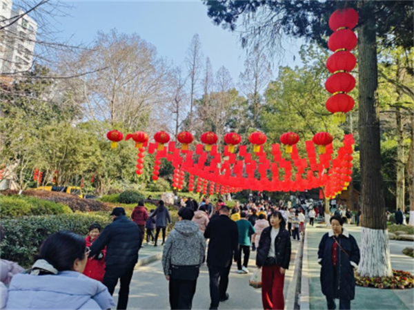 神农公园以“红红火火过大年”为主题,悬挂大红灯笼150个、彩旗500条,树木枝头点缀小灯笼500余个,整体布置错落有致。白云公园共悬挂各类灯笼3710个,摆放花卉8000盆,同时更新路灯、垃圾箱,新增休憩座椅,全面提升环境品质。城区各公园呈现出红火热烈的节日氛围,美化了城市环境,也丰富了市民文化生活。