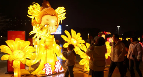 “年年好运”十二生肖灯组前,孩子们兴奋寻找自己的属相;“团团圆圆”灯组以蓝花大碗为背景,不少家庭在此拍下全家福。“茶香千年”花灯以壶倾茶泻的造型,讲述天门茶圣故里的文化传承。本次灯会持续至3月8日,还将陆续上演非遗展销、民俗表演、猜灯谜等活动。盏盏花灯不仅照亮夜空,更温暖人心,寄托侨乡儿女对新年的美好期盼。