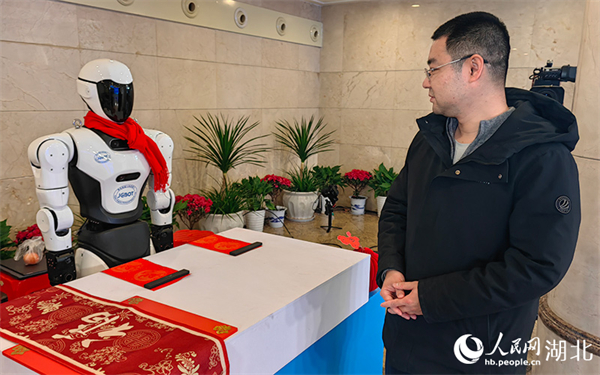 现场,“荆楚三号”双手挥毫,写下一副春联,笔锋流畅。“它搭载高速算力芯片,具备自主学习能力,教它写新对联,几分钟就能学会。”赵兴炜说。
