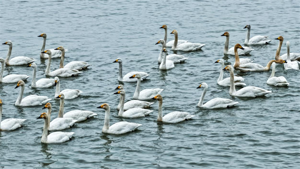 近日,沙洋县局在潘集湖国家湿地公园日常巡护监测中,观测到120余只国家二级保护动物小天鹅成群抵达。(沙洋县自然资源和规划局 供图)
