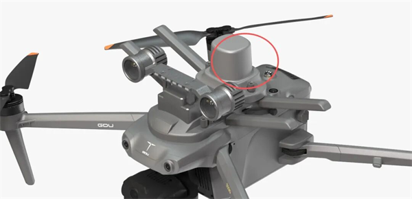 单北斗版的S200系列无人机,图片红圈圆柱体盖为独立北斗RTK(实时动态定位)模块 供图 普宙科技