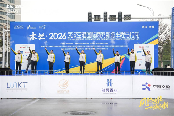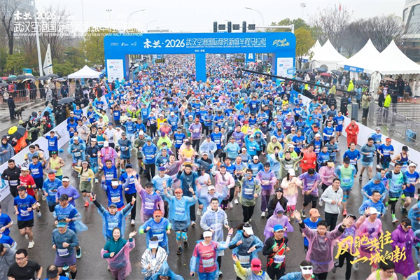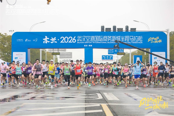 3月15日8时,木兰·2026武汉空港国际商务新城半程马拉松在空港中心鸣枪起跑。