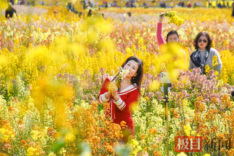 3月13日,湖北省监利市第三届“程集古镇七彩烂漫游”活动启幕。在程集镇金草帽现代农业基地,舞狮在千亩七彩油菜花海中欢腾,慕名而来的游客和市民沉浸在花海中打卡、拍照,舞台上,精彩纷呈的文艺节目丰富游客赏花体验感。