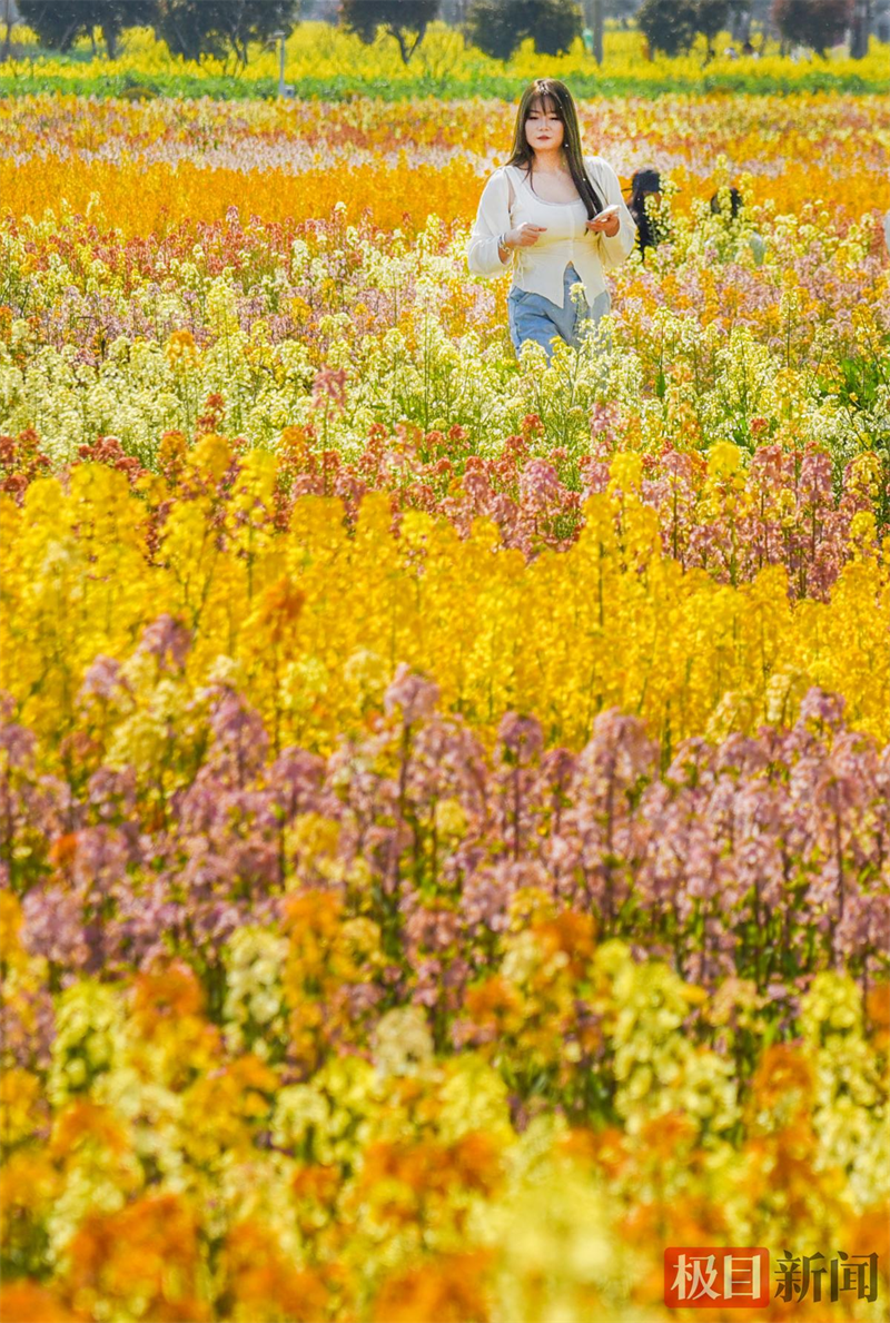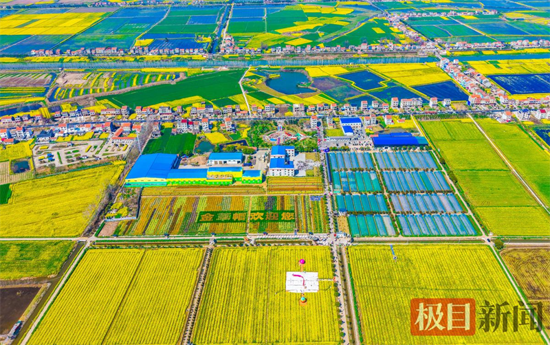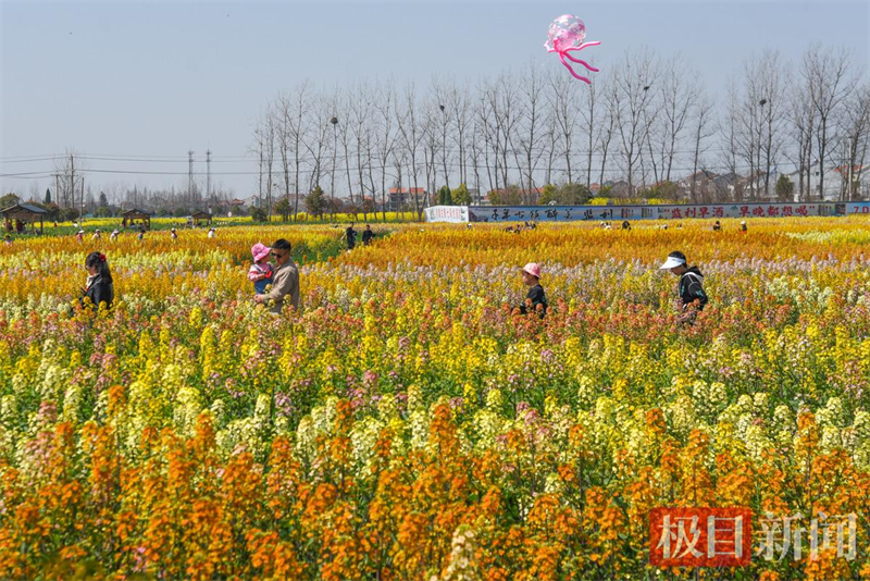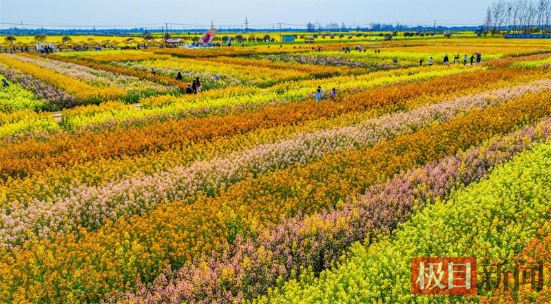 3月13日,监利市程集镇金草帽现代农业基地的七彩油菜花海景观。(极目新闻通讯员 吴淘淘 摄)