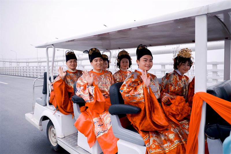 3月18日,一场别开生面的中式集体婚礼在湖北交投投资建设、中交二航局承建的武汉双柳长江大桥上浪漫上演。三对来自建设一线的新人,在巍巍桥塔与滔滔江水的见证下,身着中式传统婚服,行古礼、结同心,以“桥”为媒,许下相守一生的誓言。