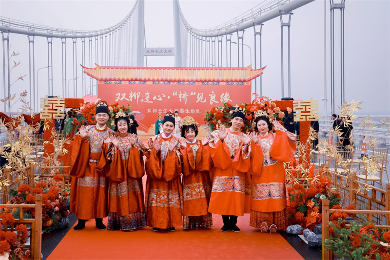 这场融合传统婚俗与工程奇迹的婚礼,为即将通车的双柳长江大桥注入了独特的人文内涵。而它背后,是无数建设者日夜兼程的坚守与奉献,他们扎根长江之畔,将青春与汗水融入这座钢铁巨龙的每一个构件,创造大桥提前6个月完成28万立方米超大体量锚碇施工、提前12个月实现213.75米主塔封顶、39个月完成主体工程施工的“双柳速度”。这些看不见的坚守与付出,成就了看得见的辉煌与奇迹,共同挺起了双柳长江大桥的钢铁脊梁。