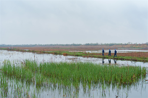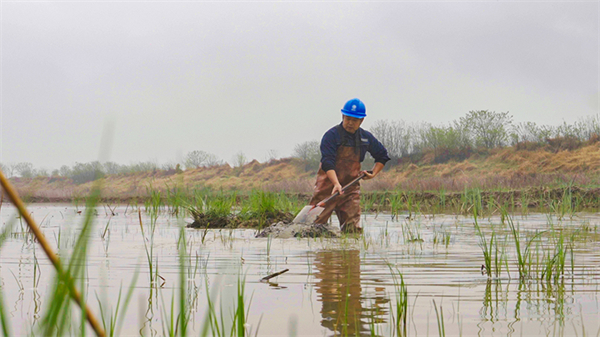 如今,每年春天搭建人工土台,已成为这群守护者迎接“国际爱鸟日”的固定行动。卢群的守护也从“水上”延伸到了“岸上”。他和同事们每天巡视湿地周边供电线路,确保排涝泵站供电稳定——那是守住水位线的“最后一道闸门”。“鸟窝不能淹,泵站更不能停。我巡线时多看一眼水位,检查一下设备,心里就踏实一点。”卢群说,“保护它们,天天都是爱鸟日。”