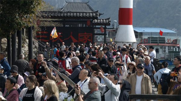 4月4日当天,160人泰国团奔赴宜昌著名景点“三峡人家”,与乘游轮而来的保加利亚、德国游客同赏峡江春色。据宜昌市文旅局统计,清明假期期间,来自泰国、新加坡、美国、英国、加拿大、法国、西班牙、瑞士、新西兰、澳大利亚等十余个国家和地区的游客组成的大型旅行团陆续抵宜。“长江探索号”游轮连续迎来两批共计300余名多国游客,集中游览三峡人家、三峡大坝、屈原故里等核心景区,入境游持续火热。