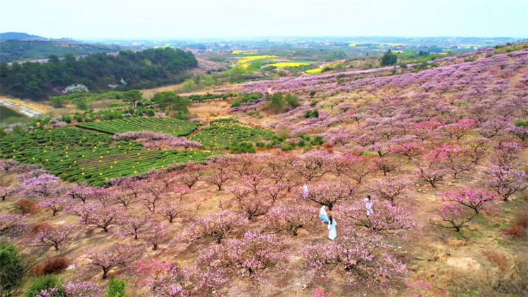 孝感市孝昌县盛开的桃花林。新华社发