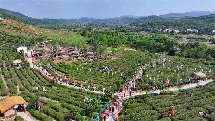 孝感市孝昌县周巷镇孝孟红生态观光茶园举办的茶叶采摘活动。新华社发
