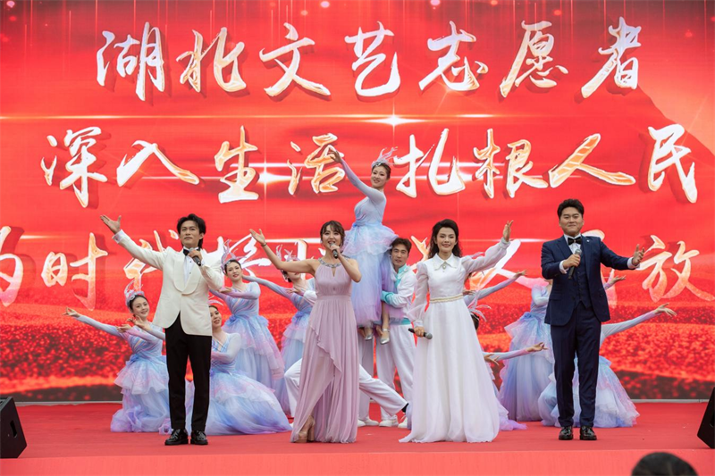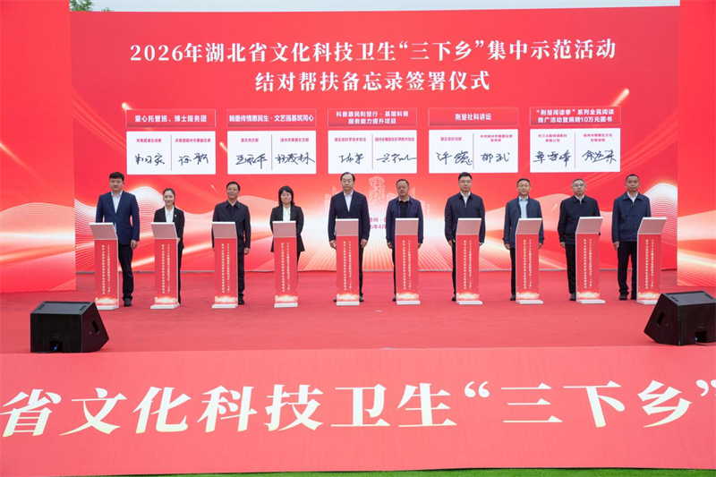 文化下乡沐春风,科技兴农助振兴,卫生惠民护安康。近日,2026年湖北省文化科技卫生“三下乡”集中示范活动暨荆楚“红色文艺轻骑兵”文艺惠民演出,在随州市曾都区九口堰新四军第五师革命旧址广场举行。当地父老乡亲欢聚一堂,在炎帝故里、编钟之乡、红色热土上,共赏文艺盛宴,共享惠民成果,共话乡村振兴美好蓝图。