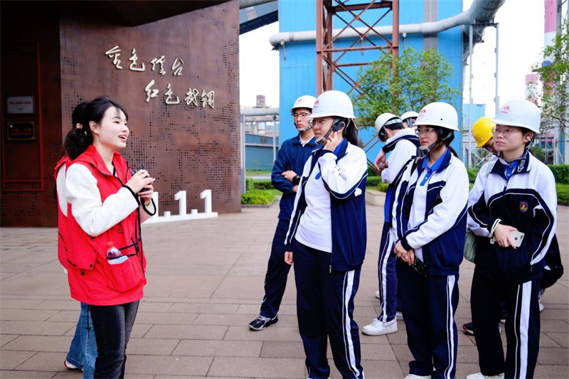 走进武钢一号高炉工业遗址公园,同学们仿佛穿越回那段火红岁月。锈红色的炉体、斑驳的操作台,无声讲述着新中国钢铁工业起步的故事。学生饶瑶原本以为重工业城市会是“沉闷刚硬”的画风,实地参观后却大为改观:“武钢厂区绿化特别好,树木繁茂、花木成荫,让我感受到武汉‘既刚又柔’的城市气质。”她动情地说,武钢就是“国之重器”的象征,“武钢只要在那里,中国的钢铁就不会发愁。站在那里,我第一次真正体会到什么叫国家实力。”