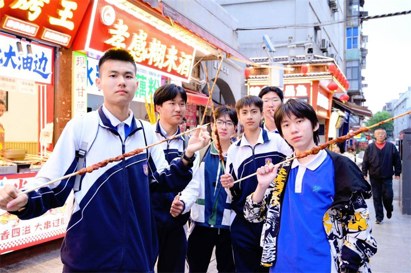 在华中科技大学,学生们走进校史馆,被扑面而来的科创氛围所感染。张留嘉印象最深的是物理课上那个熟悉的g值——引力常数。“原来最高精度的测量结果,就是华科人测出来的。”课本里冷冰冰的数字,一下子变得触手可及。漫步在华科高大的林荫道上,他注意到武汉的高校多依山傍水,与深圳那种高度密集的平地城市风貌截然不同。谈及两座城市的差异,他说:“深圳的节奏是‘快快快’,武汉也在发展,但步伐更沉稳、更有余韵。这种从容不是慢,而是历史沉淀下来的底气。”
